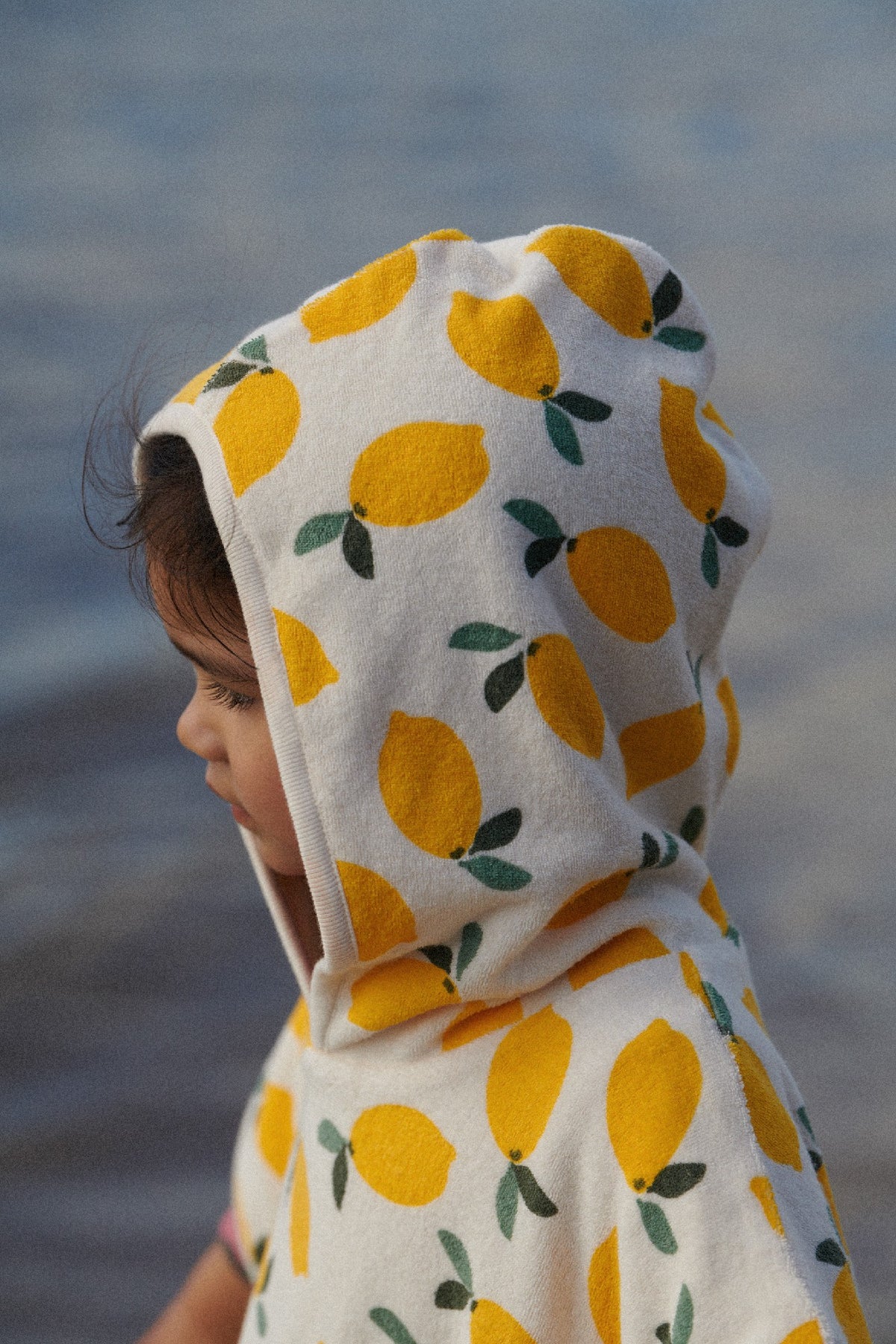 The absolute perfect poncho. Made from soft double layered organic cotton terry towelling. Super snuggly and warm for your little one after a swim at the beach. Features a front pocket (for collecting all those seashells), and domes under the arms for an adjustable fit.