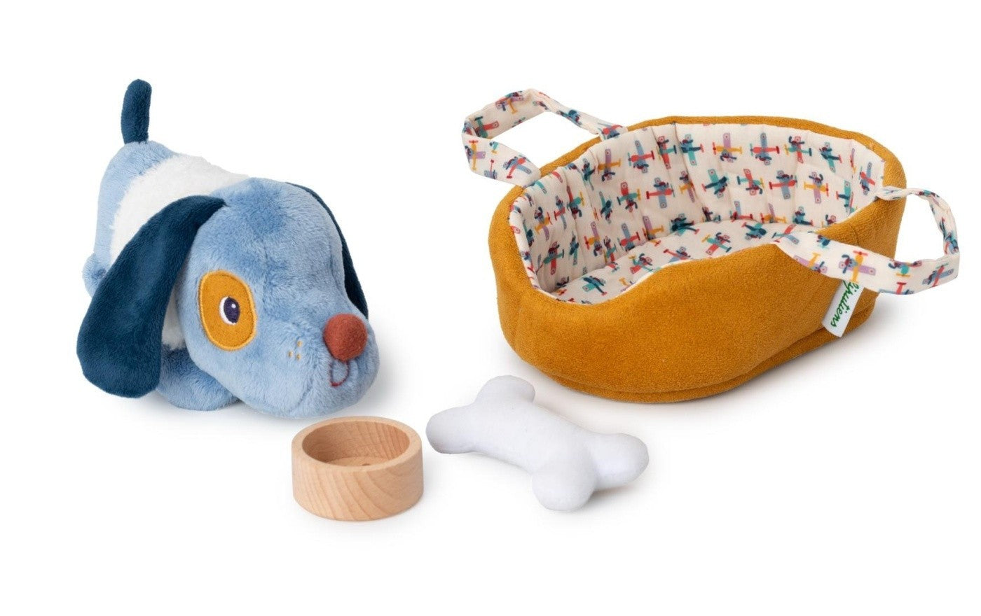 Meet Jules, the cuddly plush puppy ready to inspire creativity and nurturing play! Resting snugly in his reversible basket, Jules comes with a cosy, removable white fluffy coat, a wooden bowl, and a plush bone for playful chewing. Give his nose a little squeeze, and the young dog will respond with the sweetest little bark. This engaging playset helps develop empathy and responsibility whilst enhancing fine motor skills and inspiring imagination play. Perfect for fostering creativity and kindness during playtime adventures and matches other items in the Jules dog range from Lilliputiens!