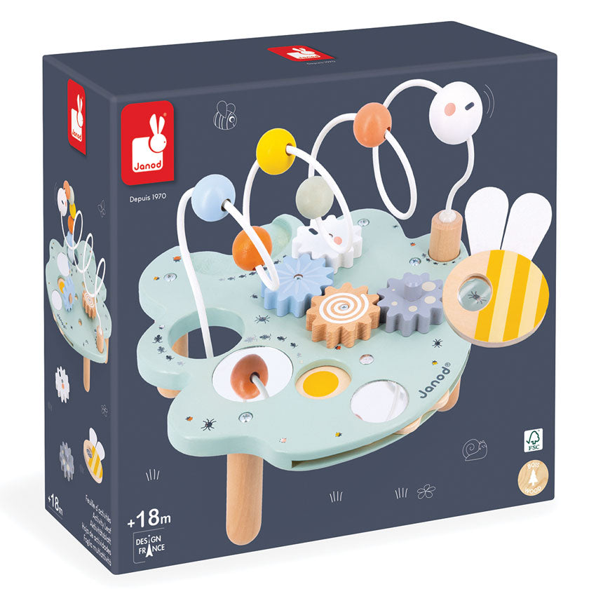 The Cocoon Activity Leaf is a delightful early-learning toy designed to spark curiosity and exploration in children aged 18 months and up. Little hands will love discovering its 5 engaging activities: 4 spinning gears, 2 fun mirrors, a vibrant colour wheel, a bee shaped magnifying glass to spot tiny garden insects, and a giant caterpillar looping toy with sliding pieces. Perfect for developing fine motor skills, sensory awareness and early coordination, each element is thoughtfully crafted for easy handling by toddlers. Painted in soft, contemporary tones and made from FSC certified wood, the Activity Leaf is an adorable addition to the Janod Cocoon collection.