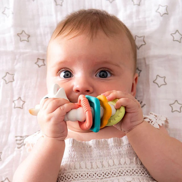Made from 100% natural rubber, produced from the latex of the Hevea Tree, and decorated with food-grade paint, you can be sure that this teether is safe for your little one.