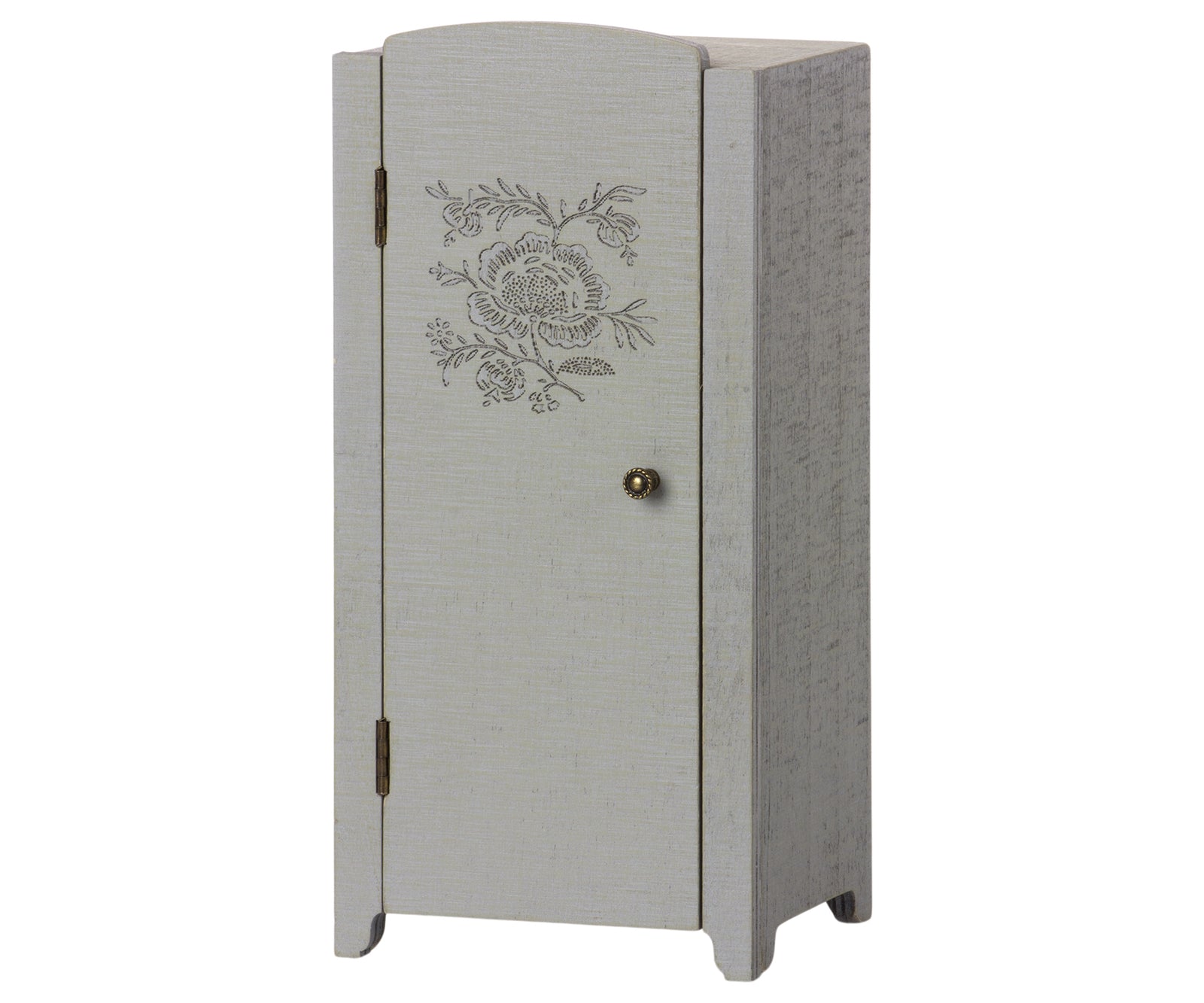 This wooden cabinet with a vintage look has a beautiful floral print on the front and wallpaper inside. A perfect place to store your small Maileg accessories. This closet fits into the Doll House. Measures 23cm in height and 11cm in width.