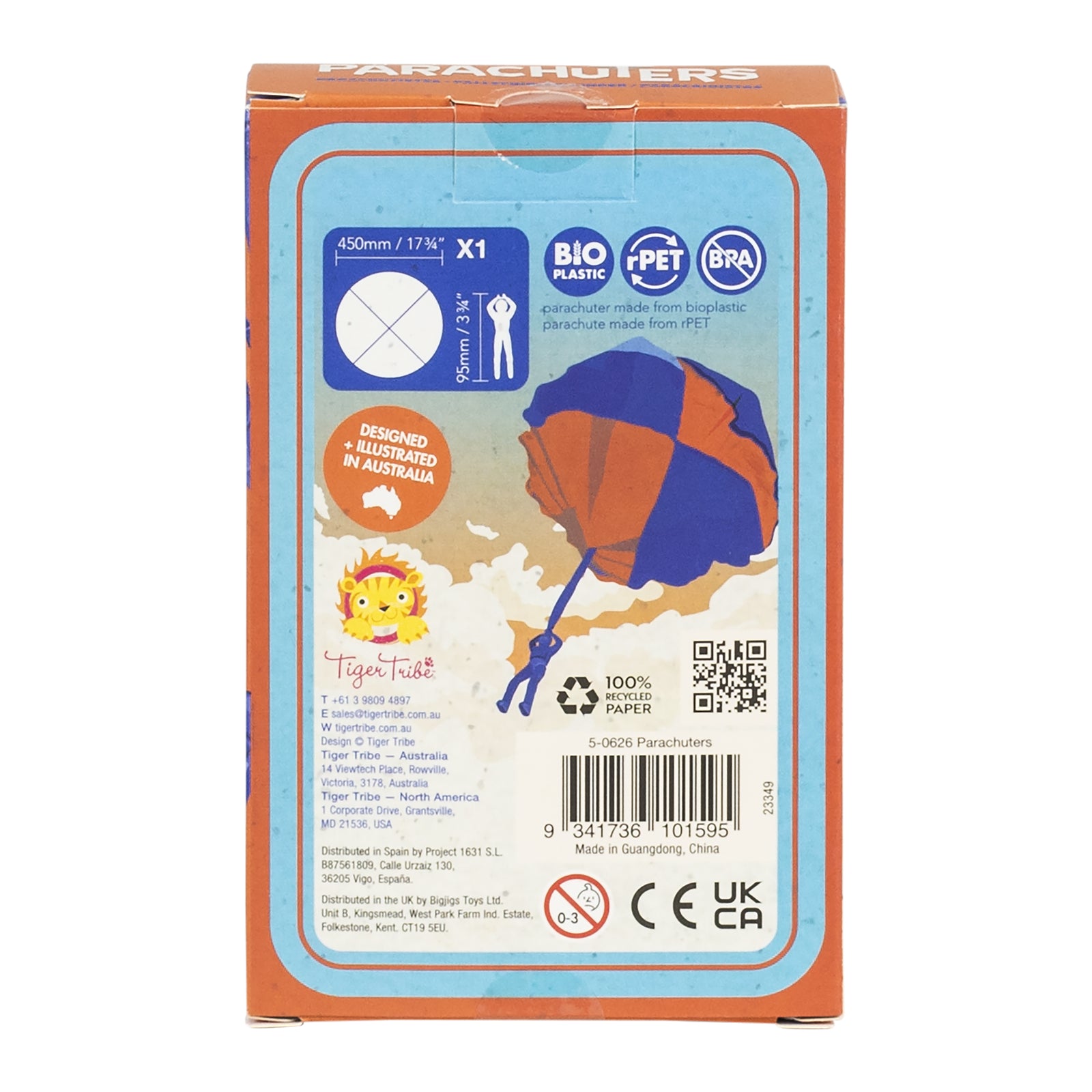 Parachuters is part of our new Eco range, with bioplastic Parachuter, recycled RPET parachute and packaging made of 100% recycled paper.