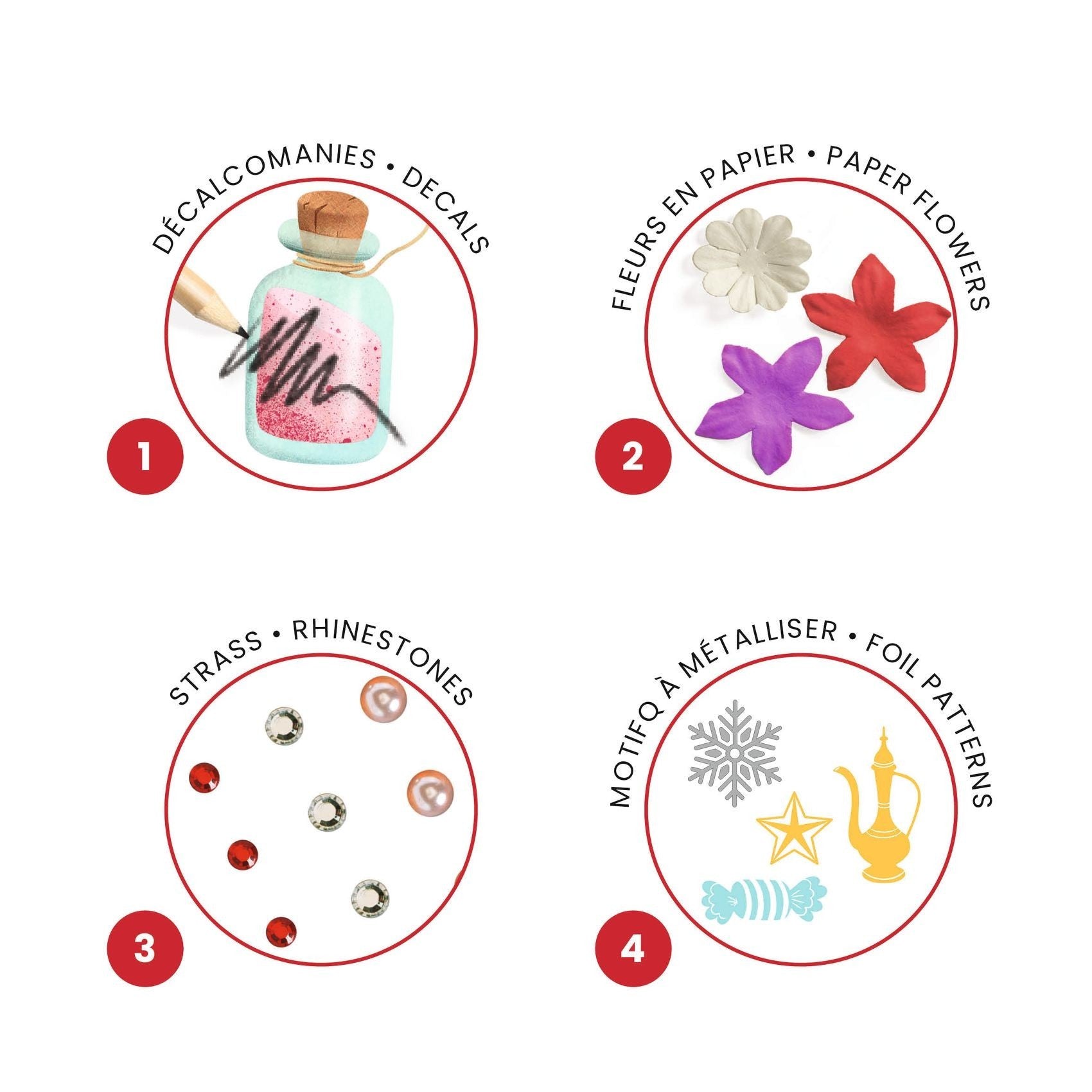 Bring the magic of the Nutcracker ballet to life with the Nutcracker Fairytales to Decorate Decals set! This creative kit allows children to adorn each board with rub-on transfers, paper flowers, self-adhesive rhinestones, and foil patterns. With four activities in one set, the results are four times as impressive! Inspired by one of the most famous classical ballets, this set includes four pictures that recreate key acts from the ballet: Christmas Eve, Waltz of the Snowflakes, the dances of the world, and the Dance of the Sugar Plum Fairy. It's a perfect activity for young artists to explore their creativity and enjoy the enchanting world of the Nutcracker.