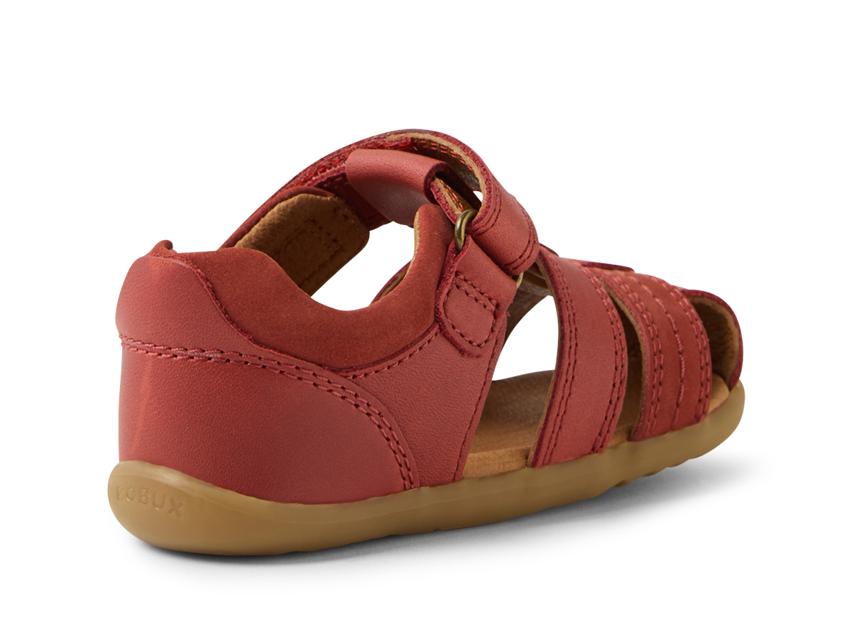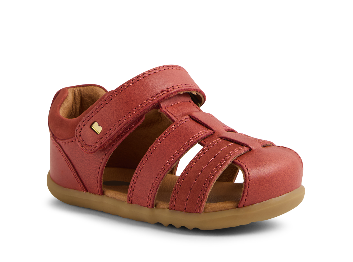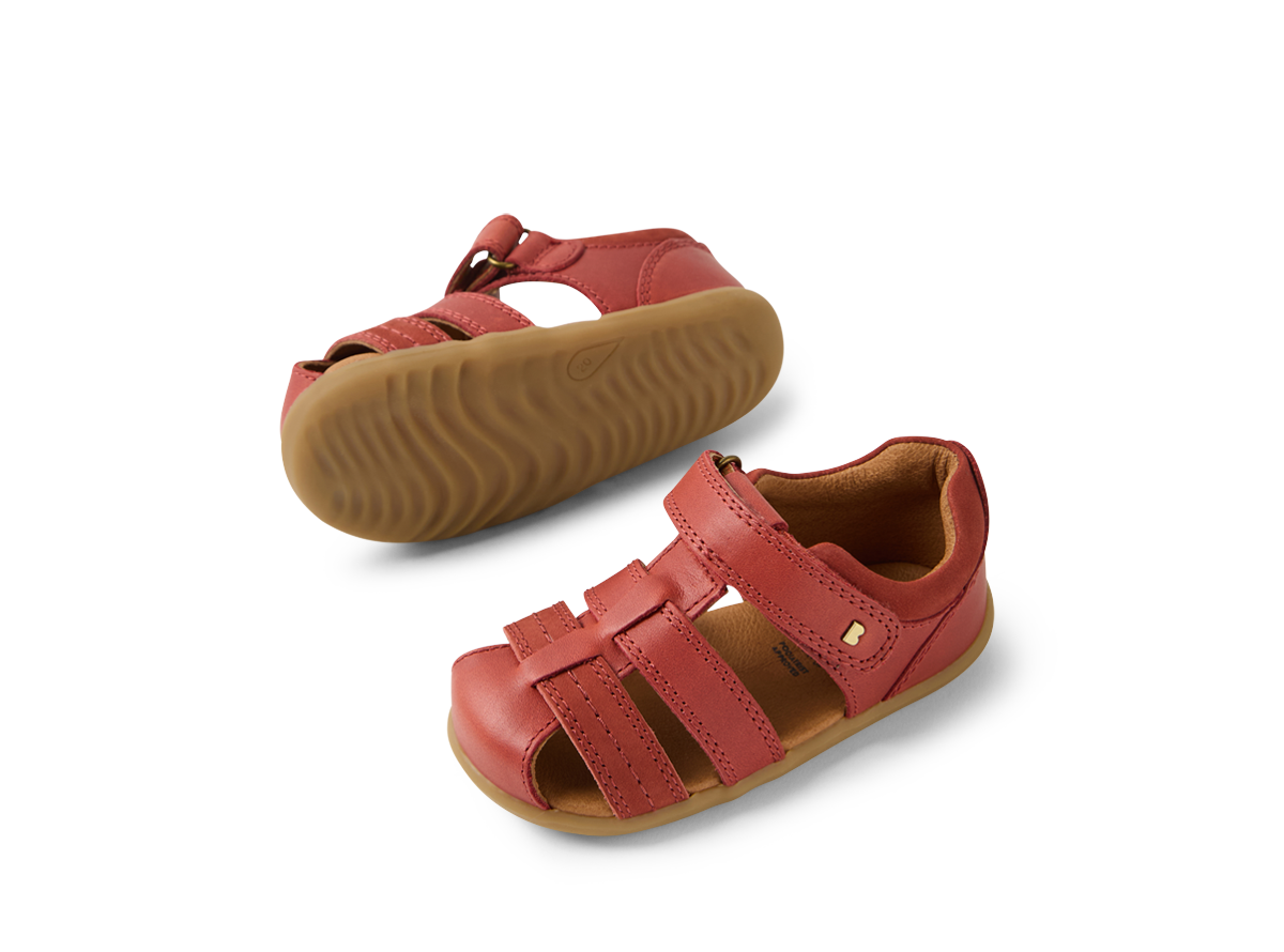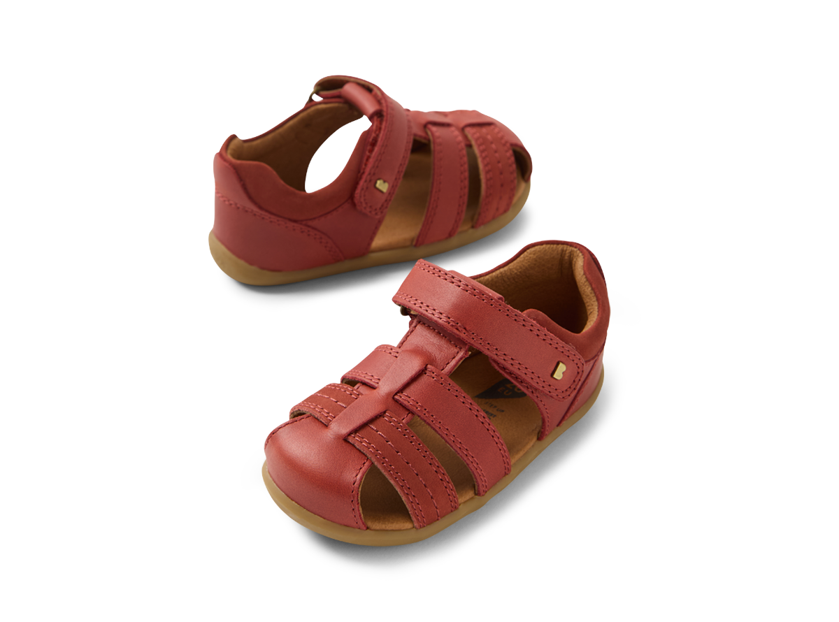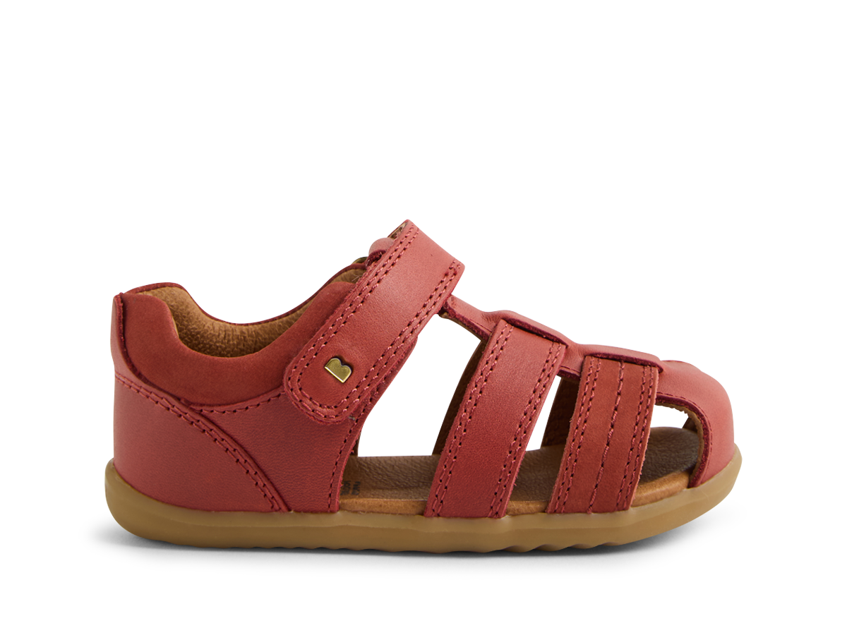 These classic summer sandals have a closed toe for added protection, while open sides provide airflow and breathability.The ROAM sandals boast an ankle strap fastening for a secure, adjustable fit, padded collar for comfort and our signature brass icon rivets add sophistication. Suitable for first walkers, this Bobux style fits average width feet, and is true to size.