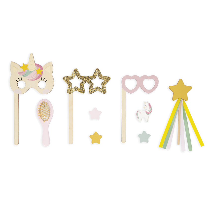 Let your child step into a magical world of beauty and imagination with the Janod Unicorn Dressing Table! This enchanting dressing table is perfectly sized for little dreamers and comes with a matching stool, making it an elegant and playful addition to your child?s space. Packed with delightful features, it includes a secret magnetic hatch for hiding precious treasures and 3 photo booth props to add extra fun to their make-believe play. With 4 unicorn and star shaped magnets, a hairbrush, and a whimsical magic wand, every play session is transformed into a dazzling adventure! This beautifully crafted piece not only inspires creative role play but also encourages children to establish their own personal care routines while fostering confidence and storytelling. Made from FSC certified wood and designed for children aged 3 years and up, it?s a thoughtful and sustainable choice for growing imaginations. Complete the magical unicorn collection by pairing this dressing table with other enchanting items, such as the Unicorn Table Top Dressing Table, Unicorn Money Box and Unicorn Jewellery Sets. Together, they create a whimsical world of play and wonder to make your child?s imagination shine.