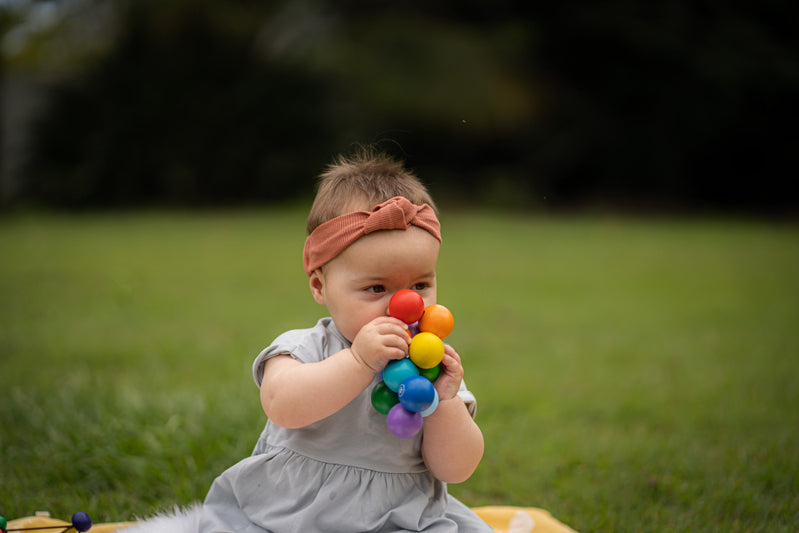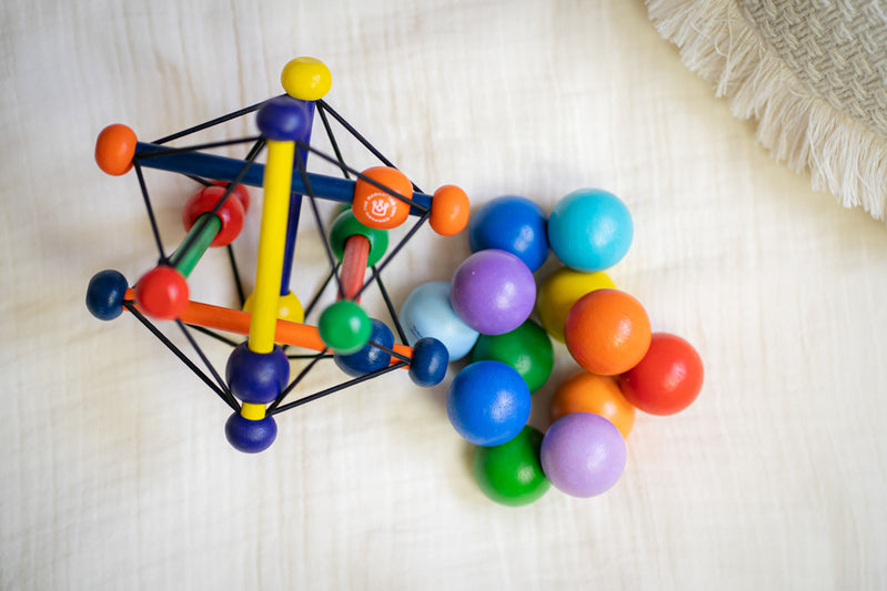 Keep baby stimulated and occupied with the Classic Baby Beads. These wooden beads are strung together with an elastic cord and can be manipulated into an endless number of configurations making it a great sensory item. Features a smooth design for easy grasping.